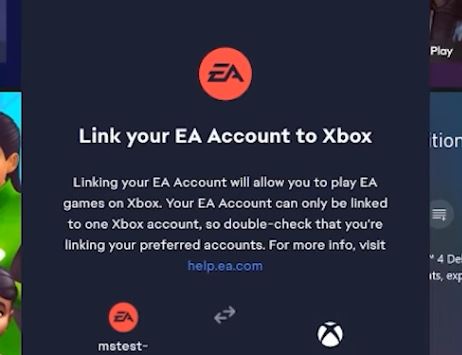 - Passo 6: Vincule sua conta da EA com sua conta Xbox;